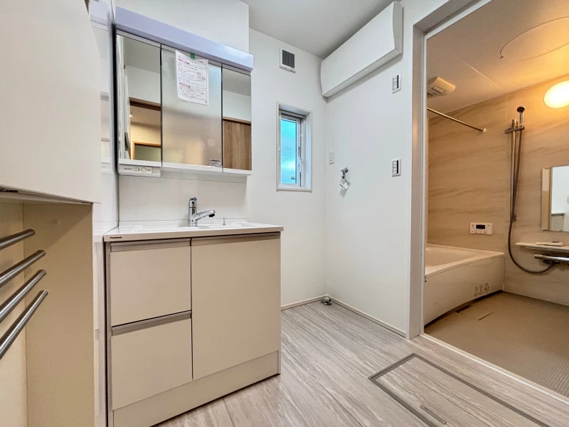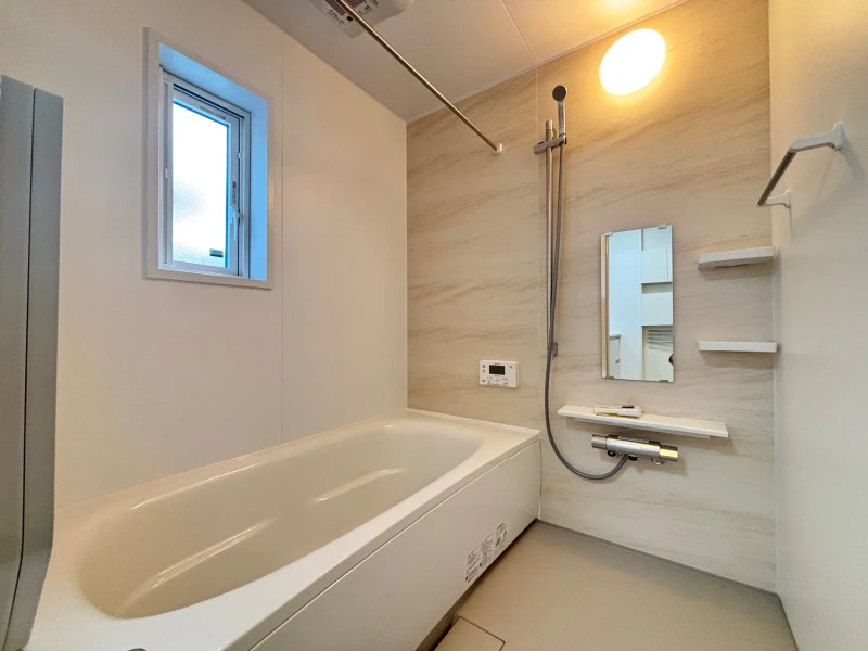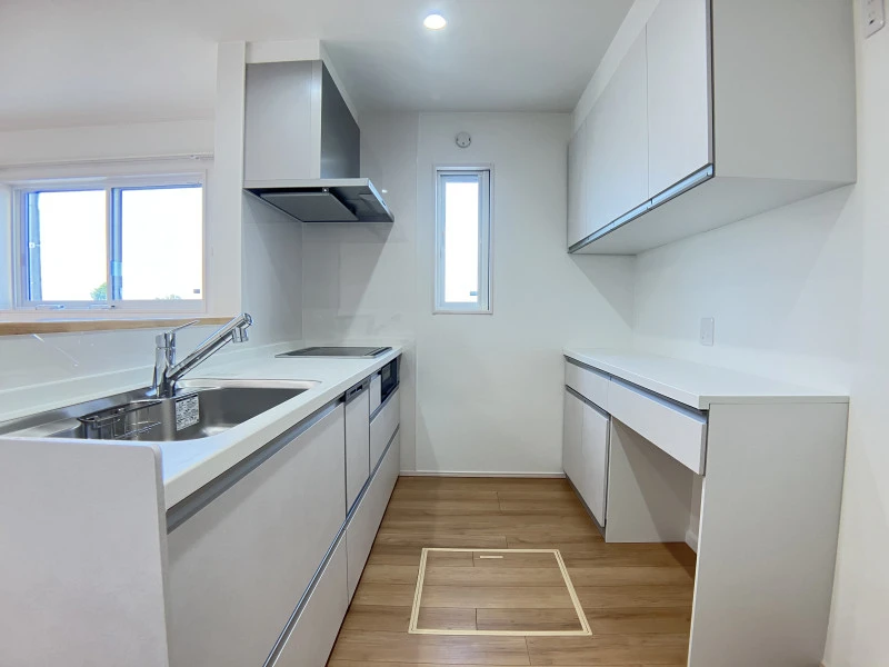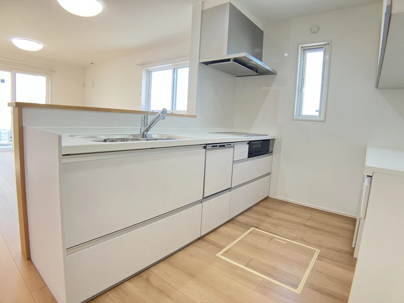 | 設備 | 上水道、下水道、IHクッキングヒーター、オール電化、宅配ボックス、太陽光発電システム、複層ガラス、照明器具付き、エアコン、BS、モニタ付インターホン、システムキッチン、省エネ給湯器、追焚機能、浴室1坪以上、トイレ2箇所、温水洗浄便座、浴室に窓 | ||