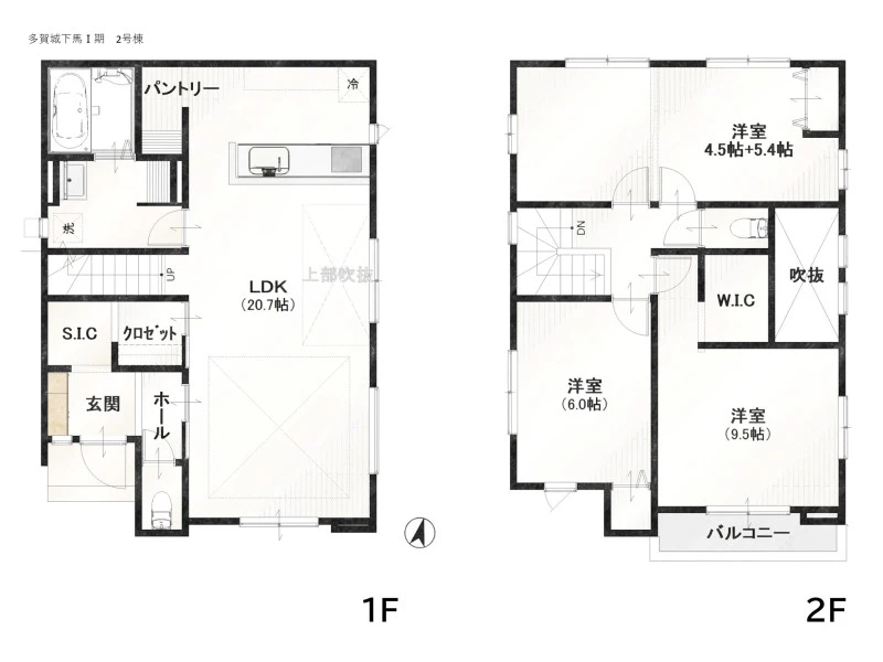 特徴 | フラット35S適合、閑静な住宅街、24時間換気システム、全居室洋室、LDK15帖以上、整形地、2面採光、吹抜、全居室収納 |