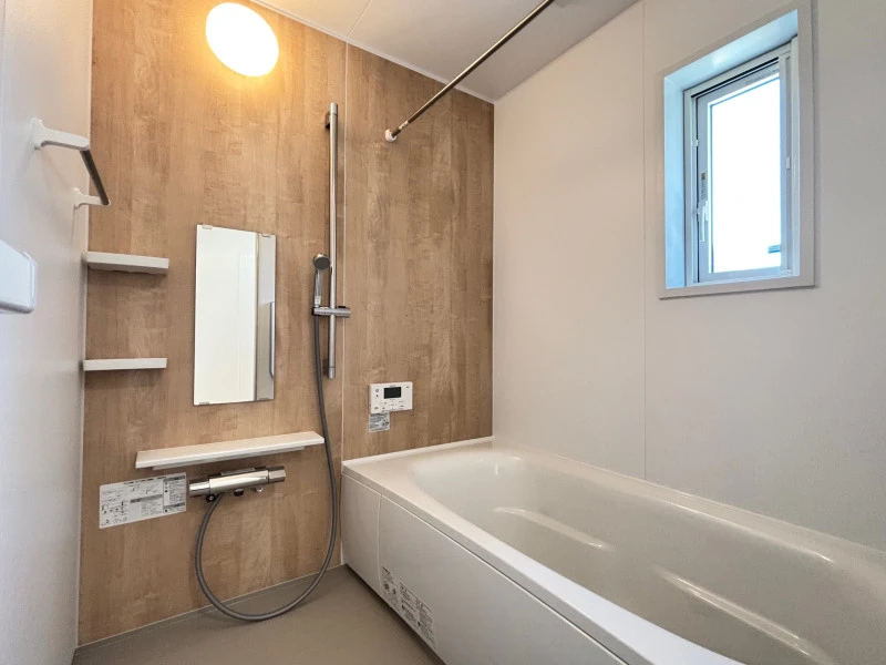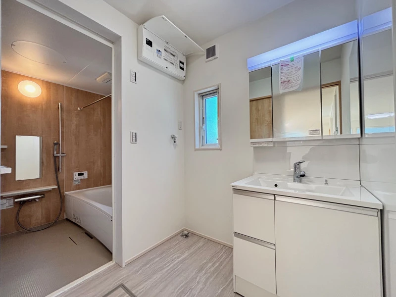 | 設備 | 上水道、下水道、IHクッキングヒーター、電気、宅配ボックス、オール電化、太陽光発電システム、ルーフバルコニー、複層ガラス、エアコン、照明器具付き、BS、モニタ付インターホン、駐車3台以上可、システムキッチン、カウンターキッチン、食器洗浄乾燥機、浄水器、省エネ給湯器、浴室乾燥機、追焚機能、浴室1坪以上、浴室に窓、浴室暖房、トイレ2箇所、温水洗浄便座、ウォークインクローゼット | ||