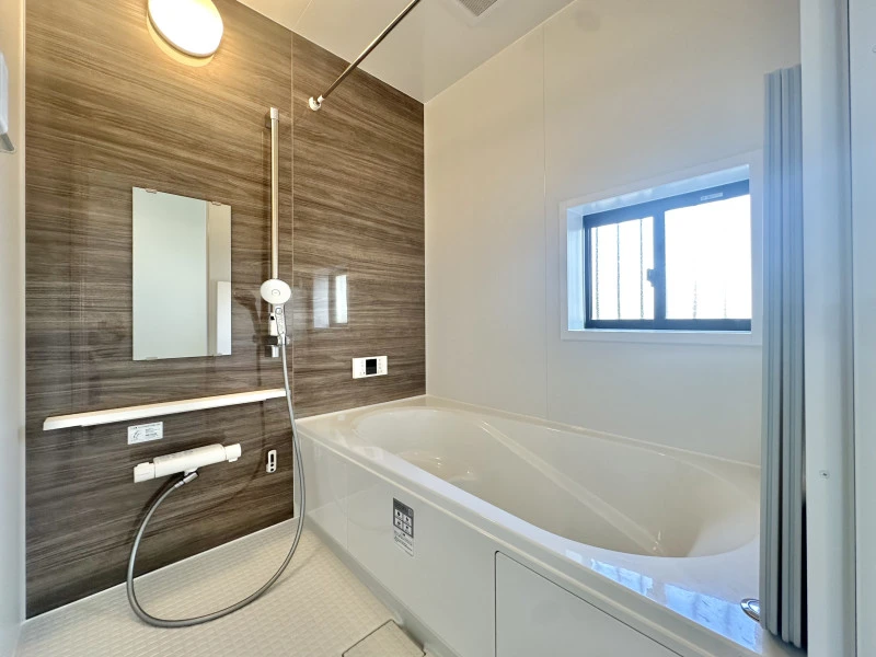 設備 | 上水道、下水道、駐車2台可、省エネ給湯器、システムキッチン、トイレ2箇所、浴室1坪以上、南面バルコニー、ワイドバルコニー、複層ガラス、温水洗浄便座、床下収納、浴室に窓、モニタ付インターホン、フローリング、浄水器、都市ガス、ウォークインクローゼット | ||