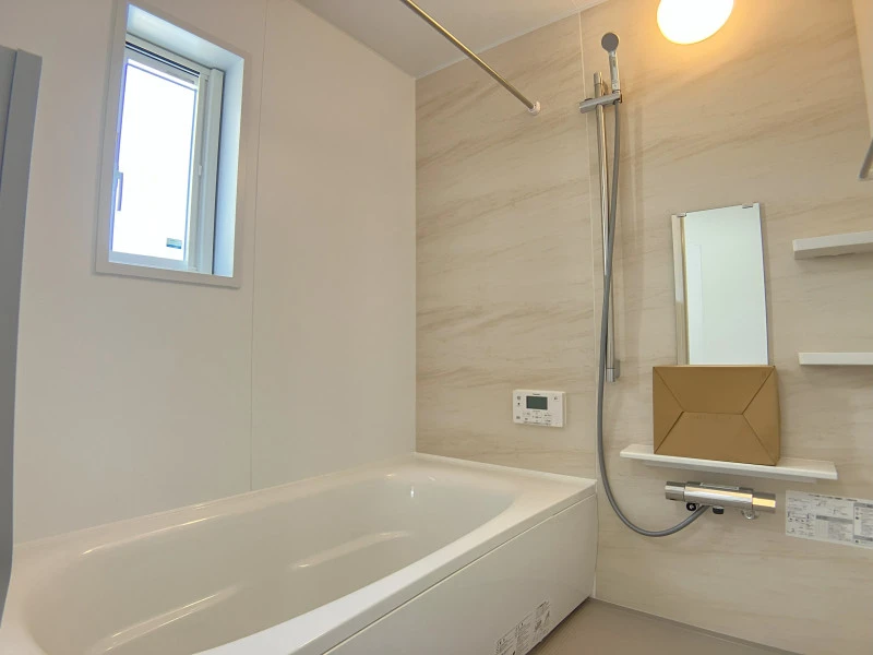 | 設備 | 上水道、浄化槽、IHクッキングヒーター、宅配ボックス、オール電化、太陽光発電システム、複層ガラス、エアコン、照明器具付き、BS、モニタ付インターホン、駐車3台以上可、システムキッチン、カウンターキッチン、食器洗浄乾燥機、浄水器、省エネ給湯器、浴室1坪以上、追焚機能、浴室乾燥機、浴室に窓、浴室暖房、トイレ2箇所、温水洗浄便座、床下収納、火災警報器等設置済 | ||