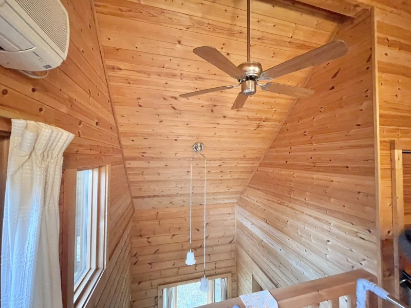 ・丸太の重厚感を感じる構造。ログハウス特有の断熱性と静穏性を備えた空間。