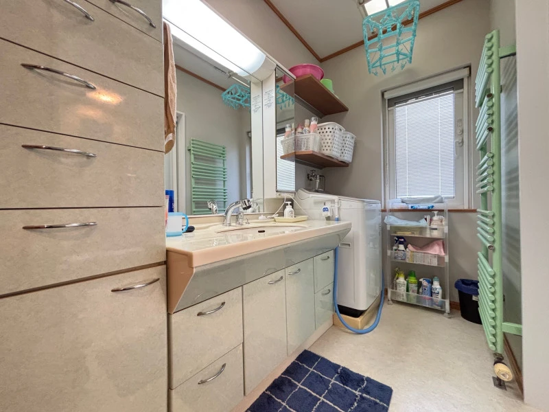 ◆洗面脱衣室が広く、洗濯機から直接洗濯物を干すことができ家事の時短になります
