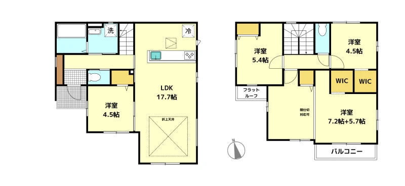 | 特徴 | フラット35S適合、閑静な住宅街、全居室収納、LDK15帖以上、2面採光、全居室洋室 | ||