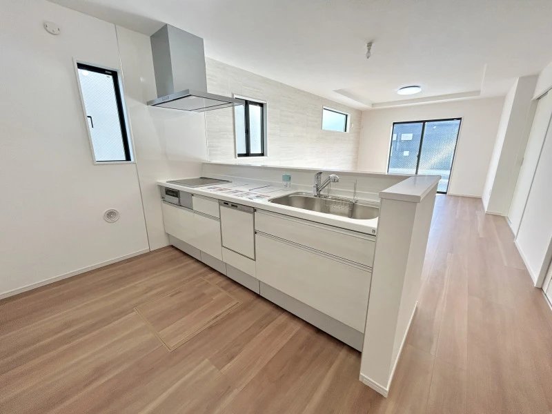 | 設備 | 省エネ給湯器、システムキッチン、浴室乾燥機、トイレ2箇所、浴室1坪以上、複層ガラス、温水洗浄便座、床下収納、浴室に窓、モニタ付インターホン、食器洗浄乾燥機、浄水器、ウォークインクローゼット、上水道、オール電化、IHクッキングヒーター、駐車3台以上可、下水道 | ||