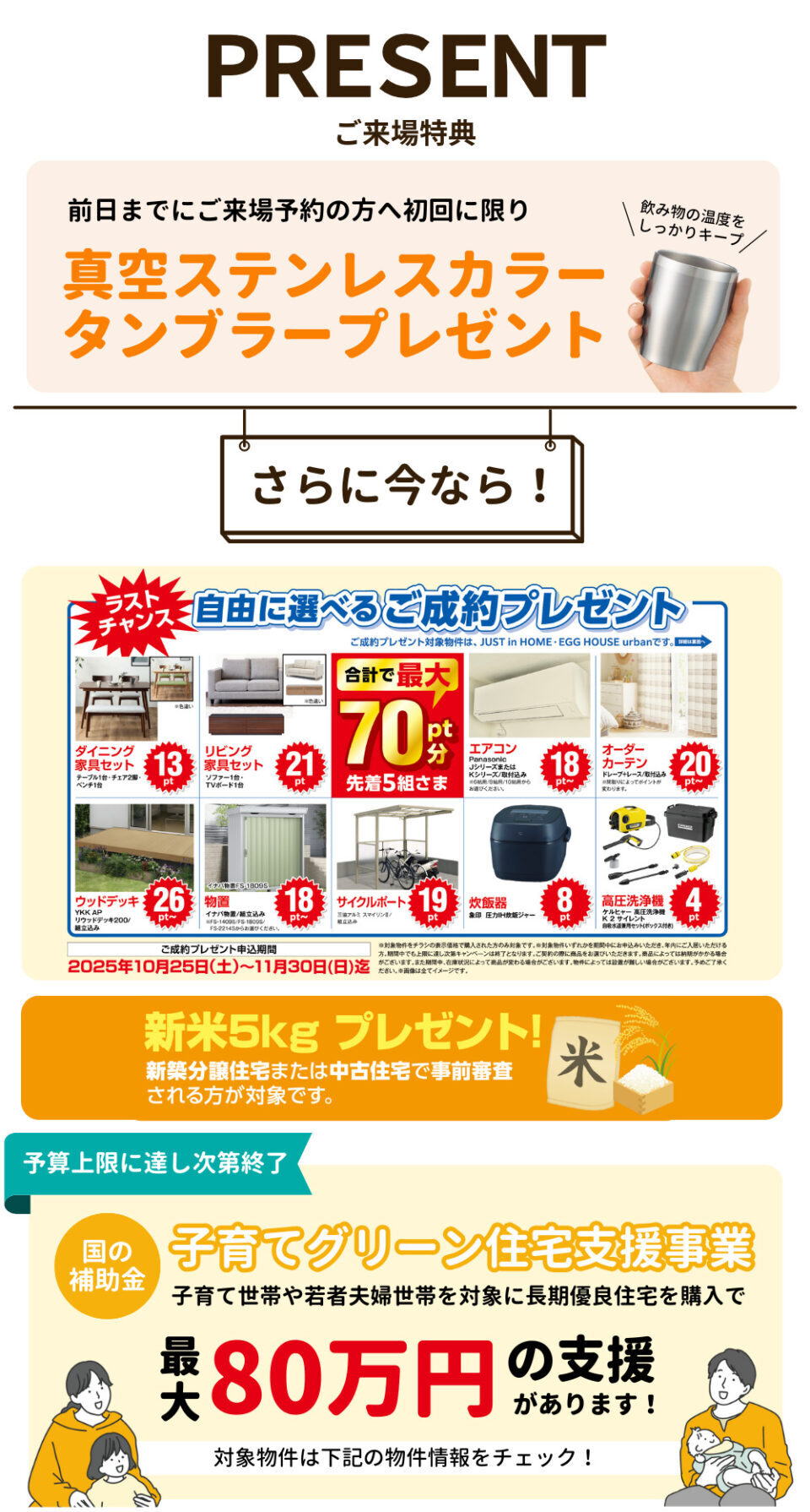 70pt分の自由に選べるご成約プレゼントを実施中!